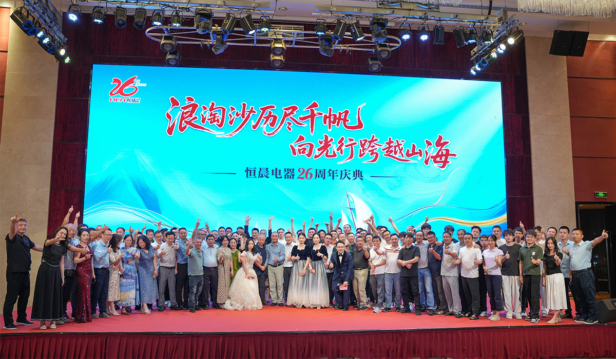 2025年8月15日,恒晨電器26周年慶典在惠州皇冠假日酒店舉行,500多名員工共襄盛舉。慶典隨著主持人王駿登場正式拉開帷幕,恒晨人齊聚一堂,共同回首過往、展望未來。