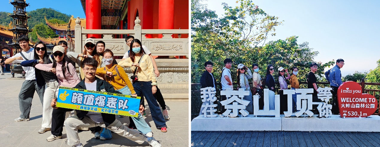 午飯后自由游覽觀音寺,有人賞景,有人上香祈福。之后集體合影,隨后登山挑戰(zhàn)開始。爬山途中,打卡活動趣味十足,大家相互扶持,情誼深厚。男生主動幫女生拎包、攙扶,歡聲笑語回蕩山間。不同部門同事交流協(xié)作,情誼愈發(fā)醇厚。經(jīng)過2小時攀登,各小組陸續(xù)登頂,遠(yuǎn)眺城市風(fēng)光,歡呼慶祝,自由打卡留影后集體合影。
