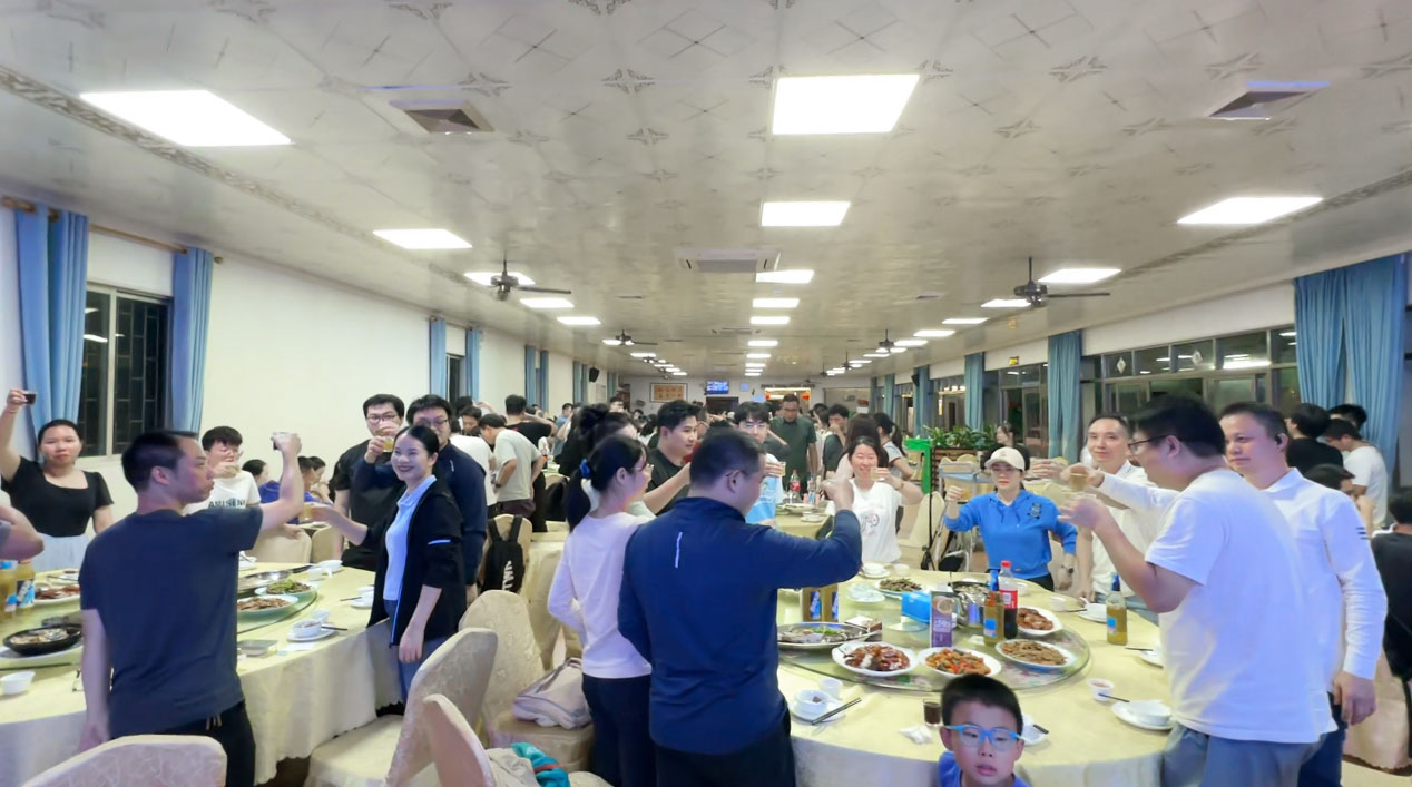 夜幕降臨,大家下山:從茶山頂下到觀音寺后,部分人打車,小部分同事徒步5.4公里前往停車場,6點(diǎn)半成功匯合。晚餐品嘗東莞燒鵝、燒雞,色澤紅亮、皮脆肉嫩,大家吃得盤光碗凈,贊活動不虛此行。